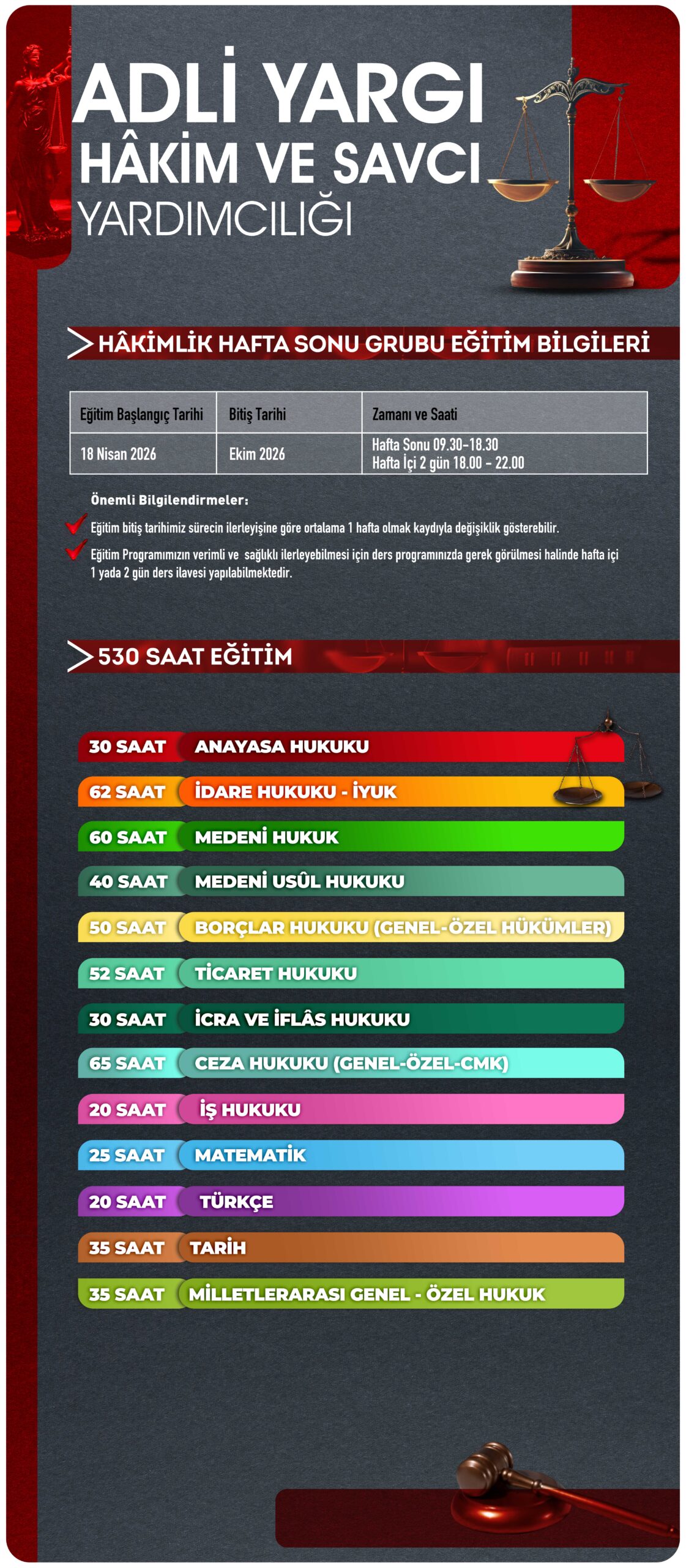 Toplam Ders Saati: 530 Saat Adli Hakimlik Programı + 130 Saat Soru Çözüm Kampı